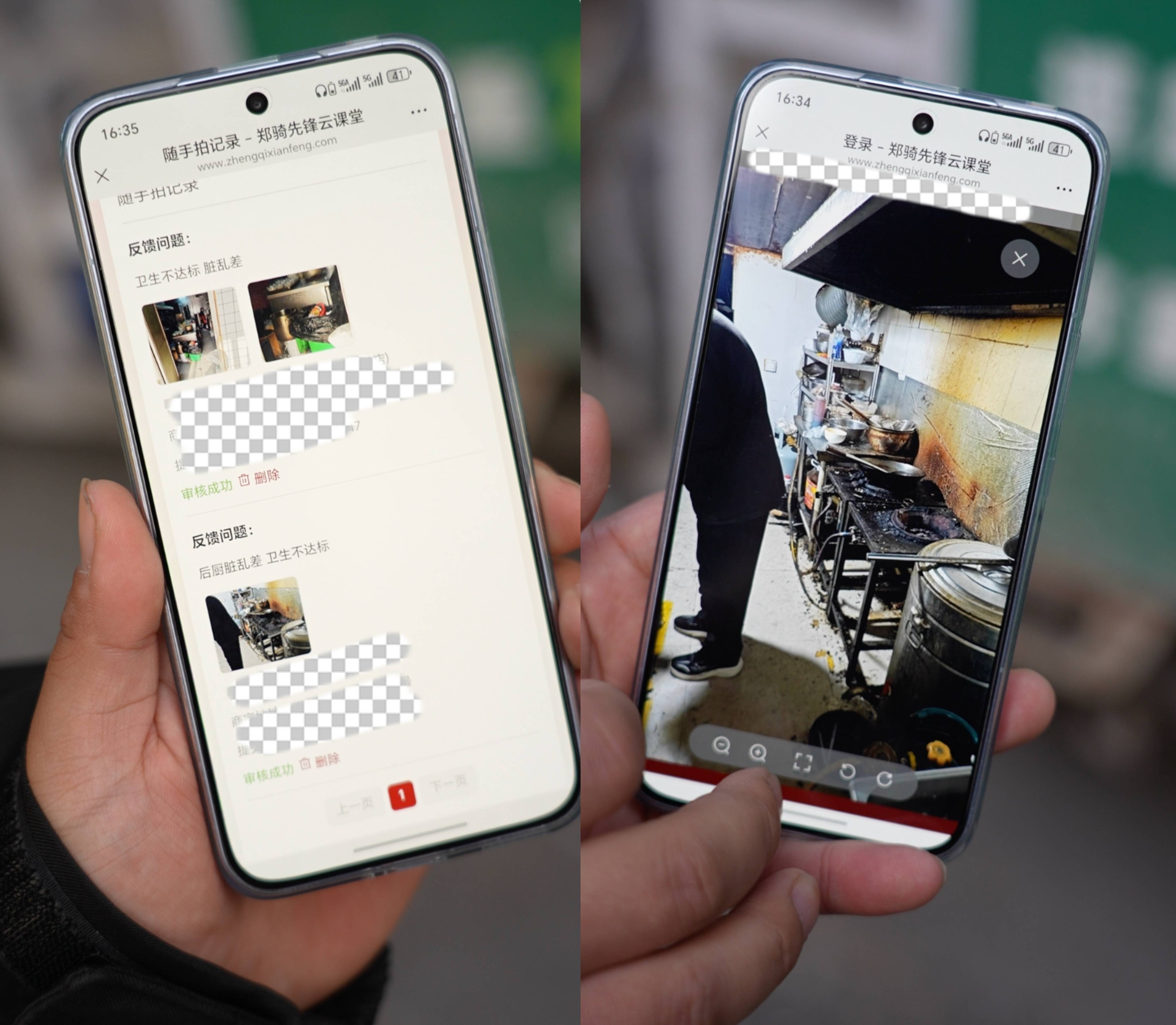 图为骑手展示的“郑骑时尚唾手拍”手机操作页面(拼版相片)。新华社记者 孙清清 摄一位参与举报的骑手坦言